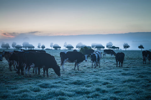 Our cows roam freely over the farm, which provides a low-stress environment with plenty of feed.